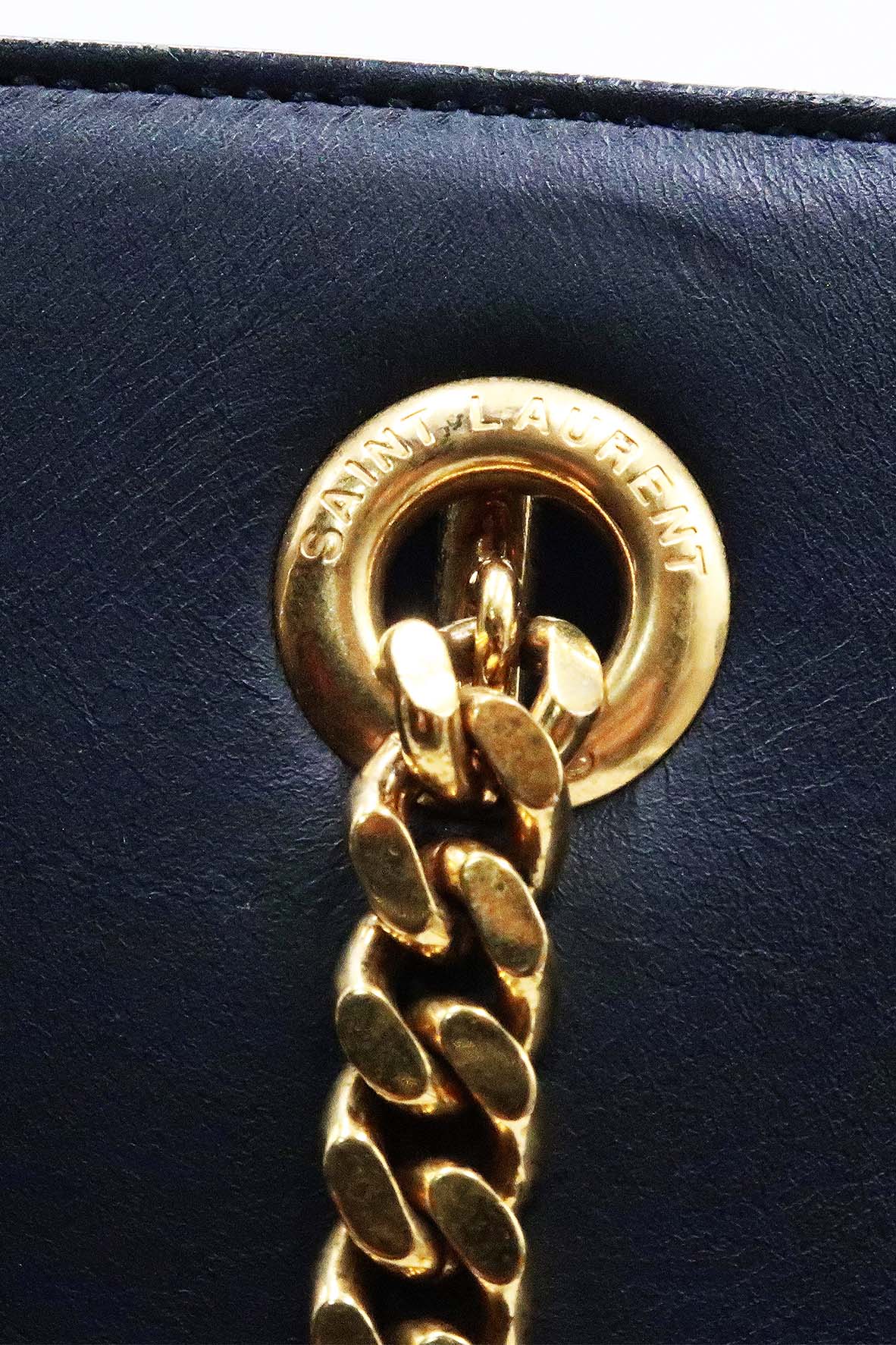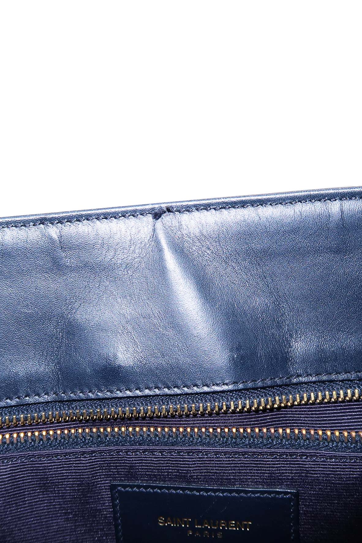 DELICATE Treat it gently and with extra care. Saint Laurent's understated 'Shopper' tote has a large, unstructured shape that will fit a spare pair of flats, laptop and makeup kit. Crafted in Italy from navy textured-leather, Use it every day or try yours as an in-flight carry-on. The size guide is approximate and may vary.