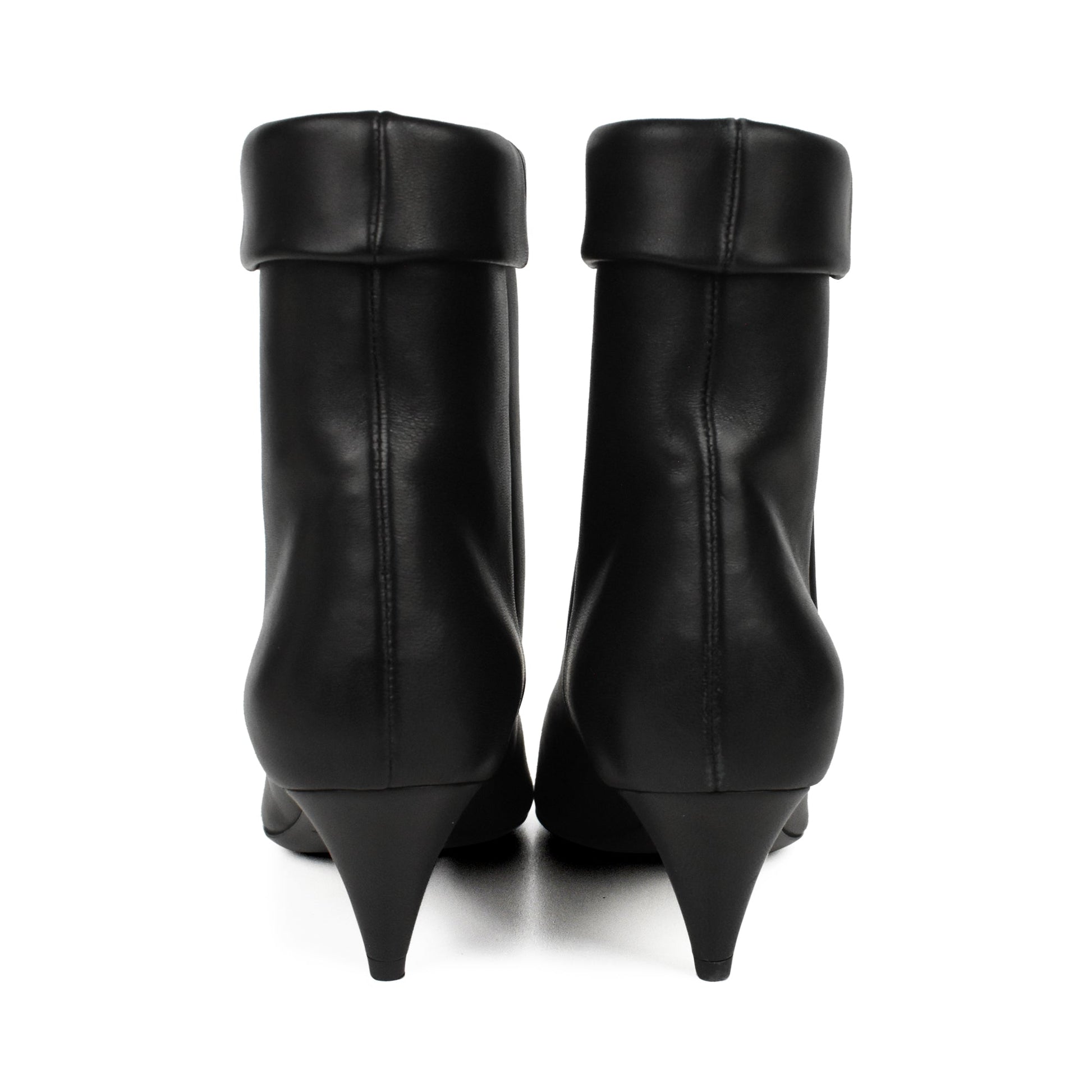 Saint Laurent 'Charlotte 55' pointed toe ankle boots in smooth black leather with fold over cuffs and kitten heels.