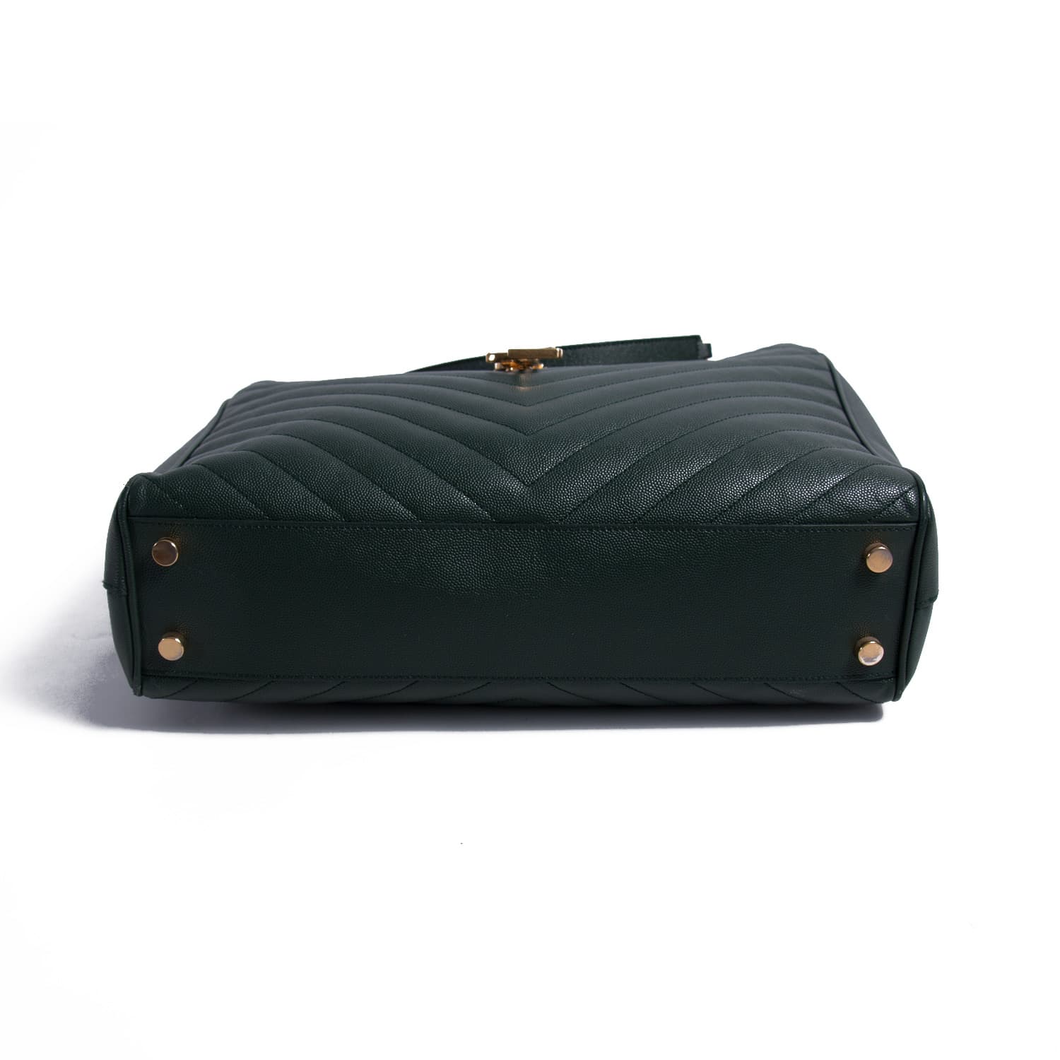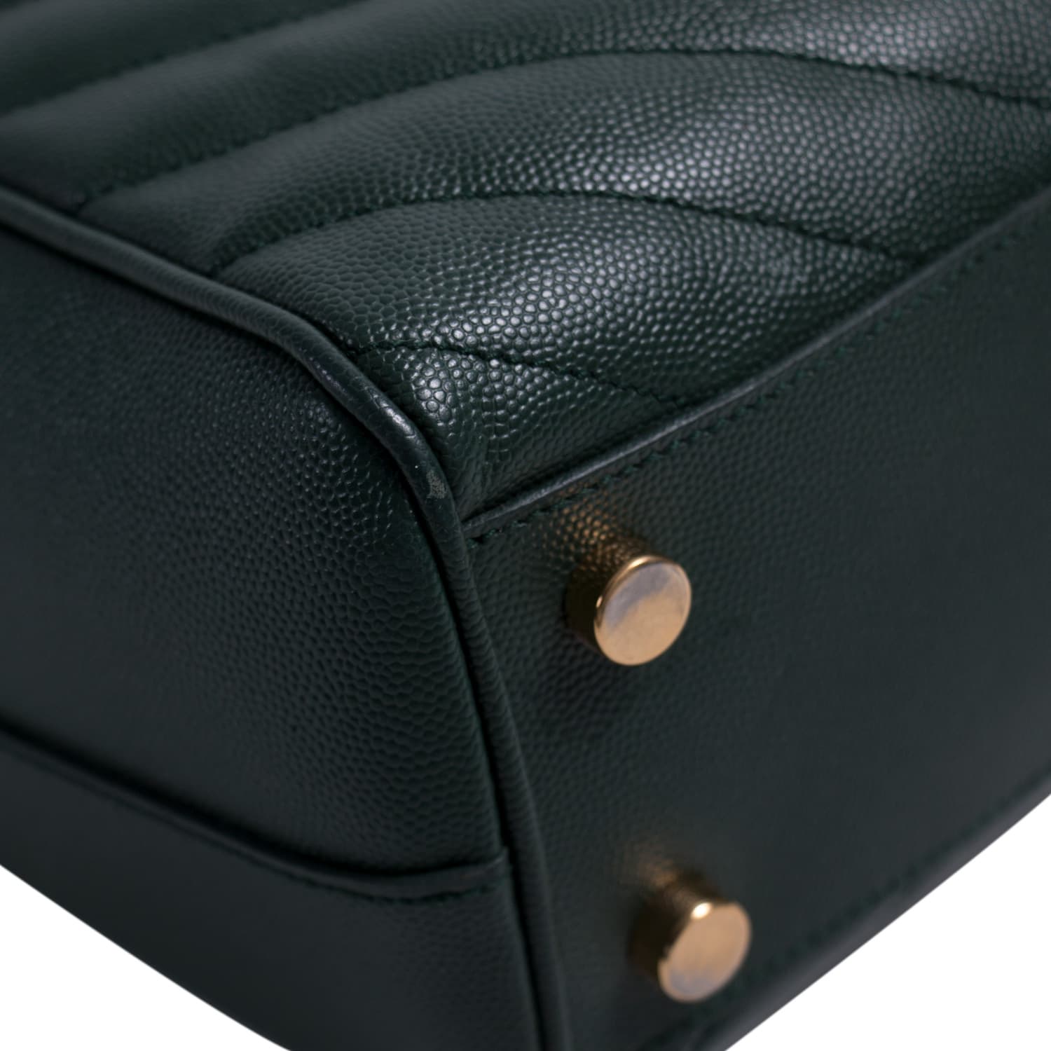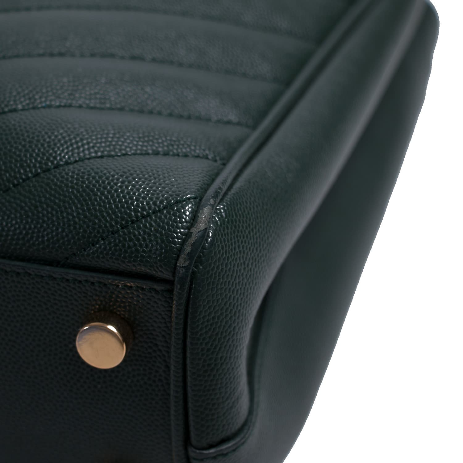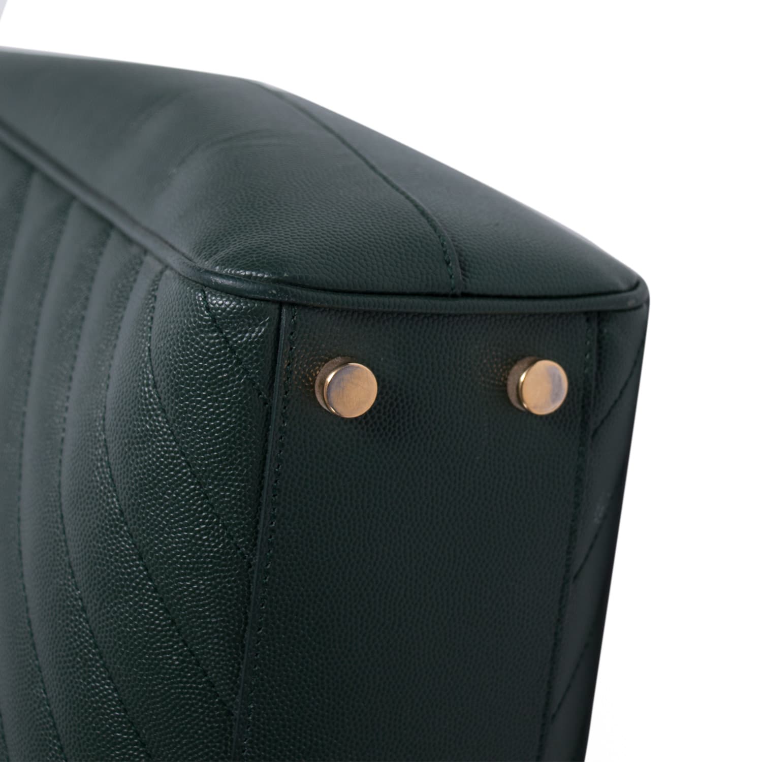 Details: Green Matelassé Leather / Gold-Tone Hardware / Dual Leather and Chain Shoulder Straps / Studs at Base / Black Fabric Interior Lining / Three Compartments, one with Zipper Closure / Magnetic Snap Closure at Front