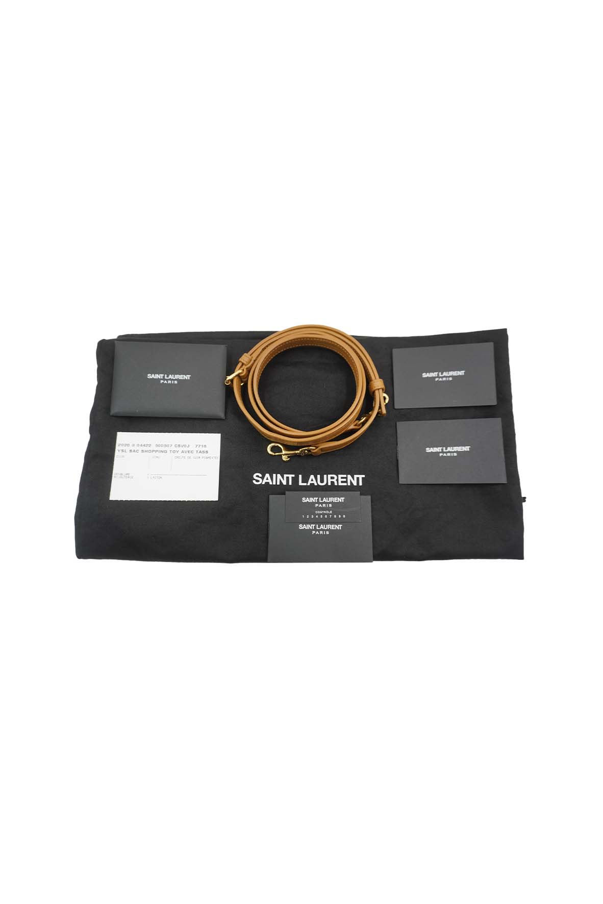 Saint laurent toy north south tote bag in Tan.Made from smooth calf leather, it's subtly embossed with golden logo detailing and adorned with an encased monogram tag. From it dangles, the iconic YSL charm. Adjustable and removable strap converts this bag from day to night.