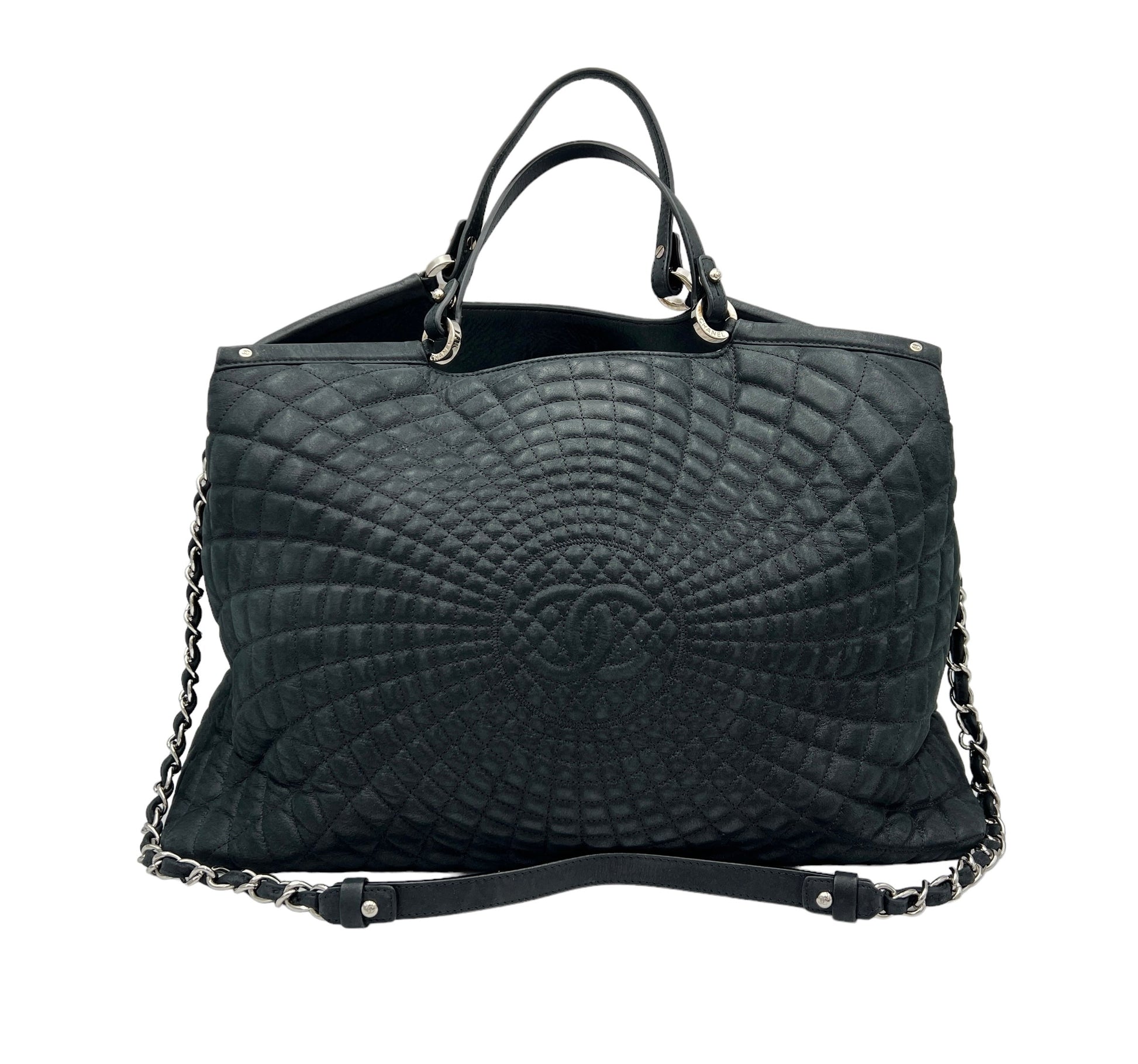 Sea Hit Black Tote Bag in Calfskin, Silver hardware