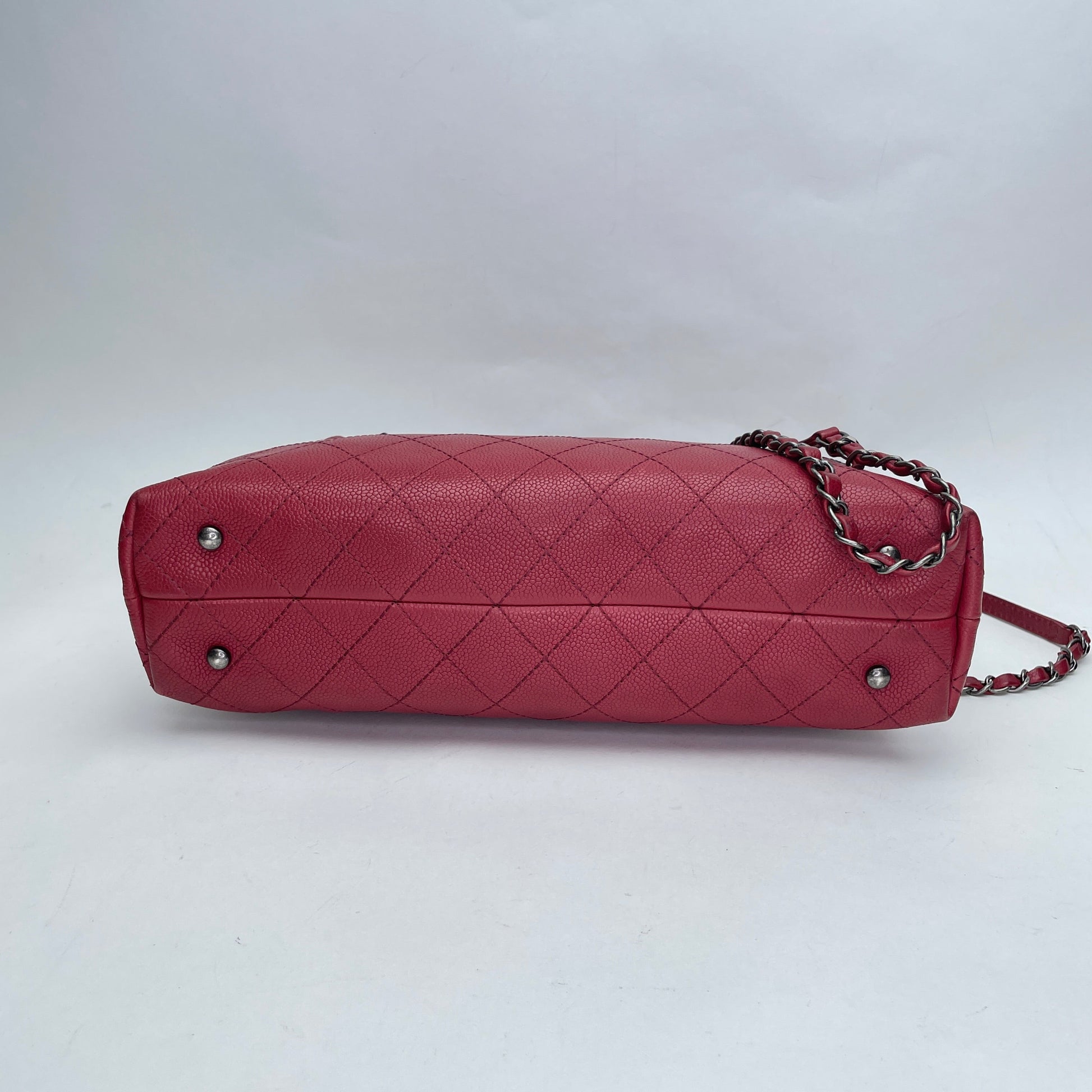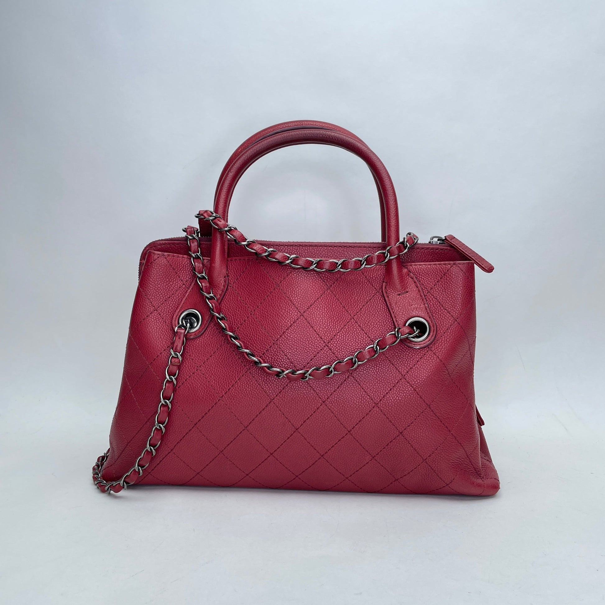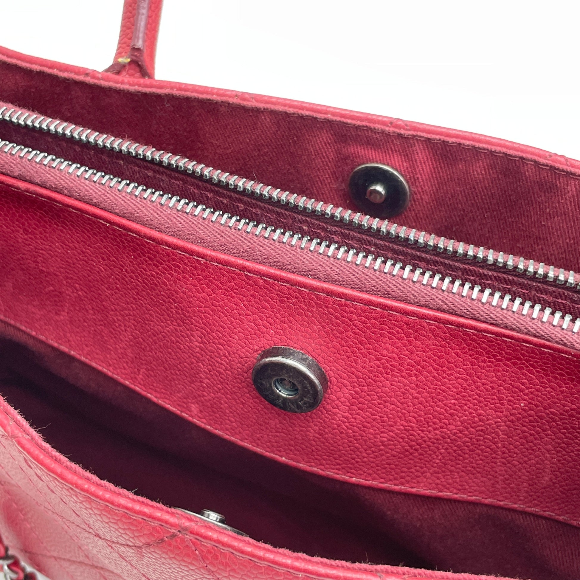 Shopping Red Tote Bag in Caviar Leather, Ruthenium hardware