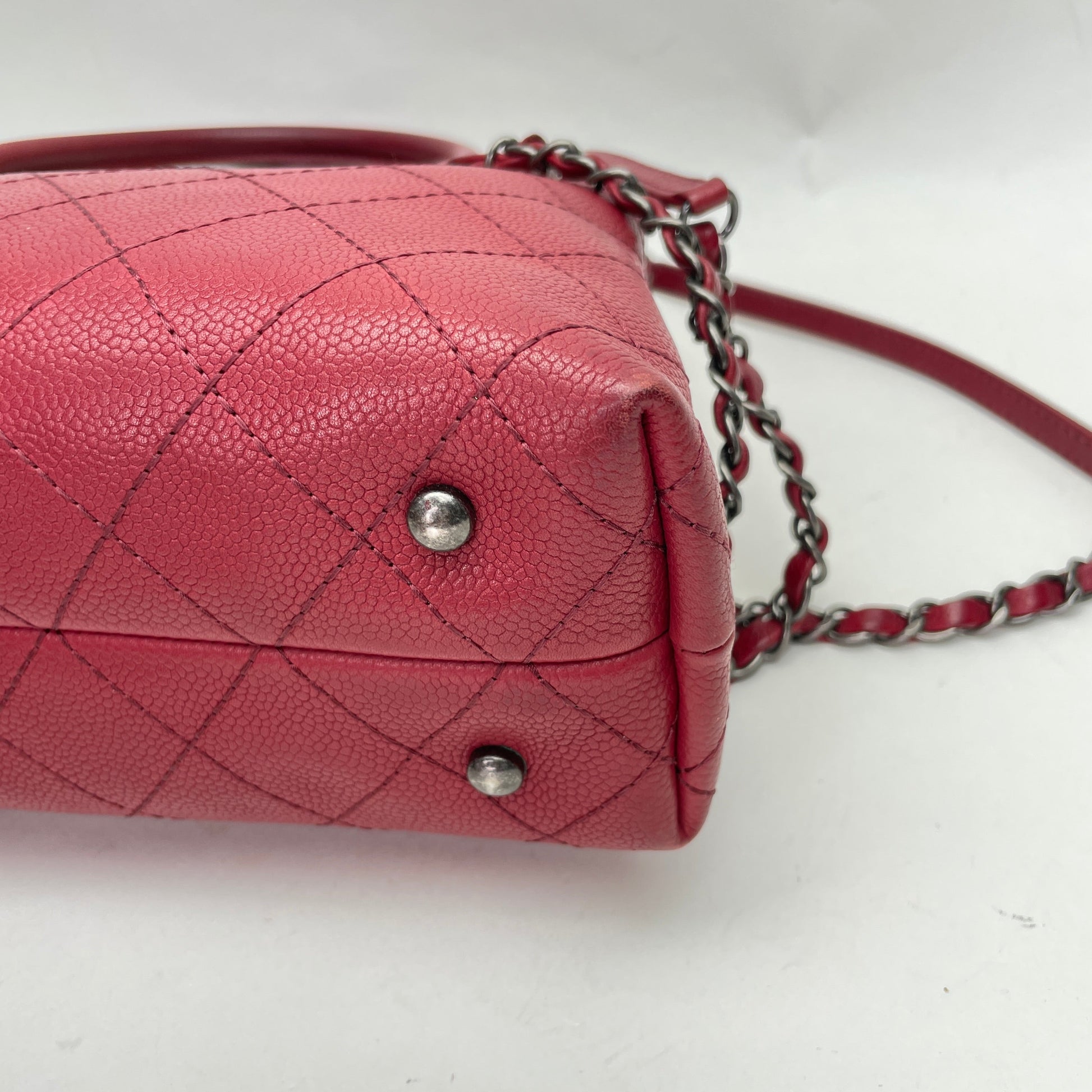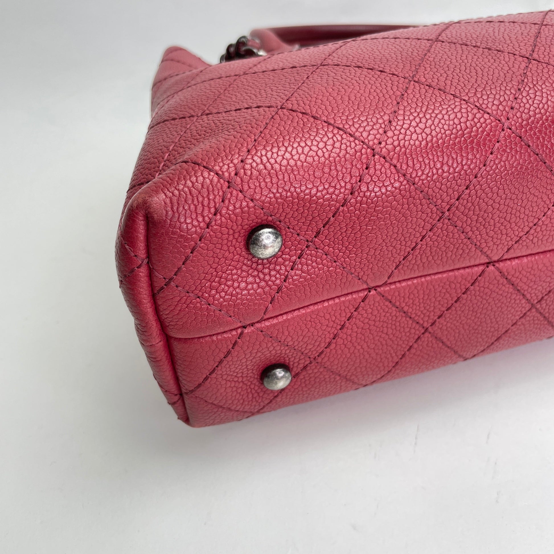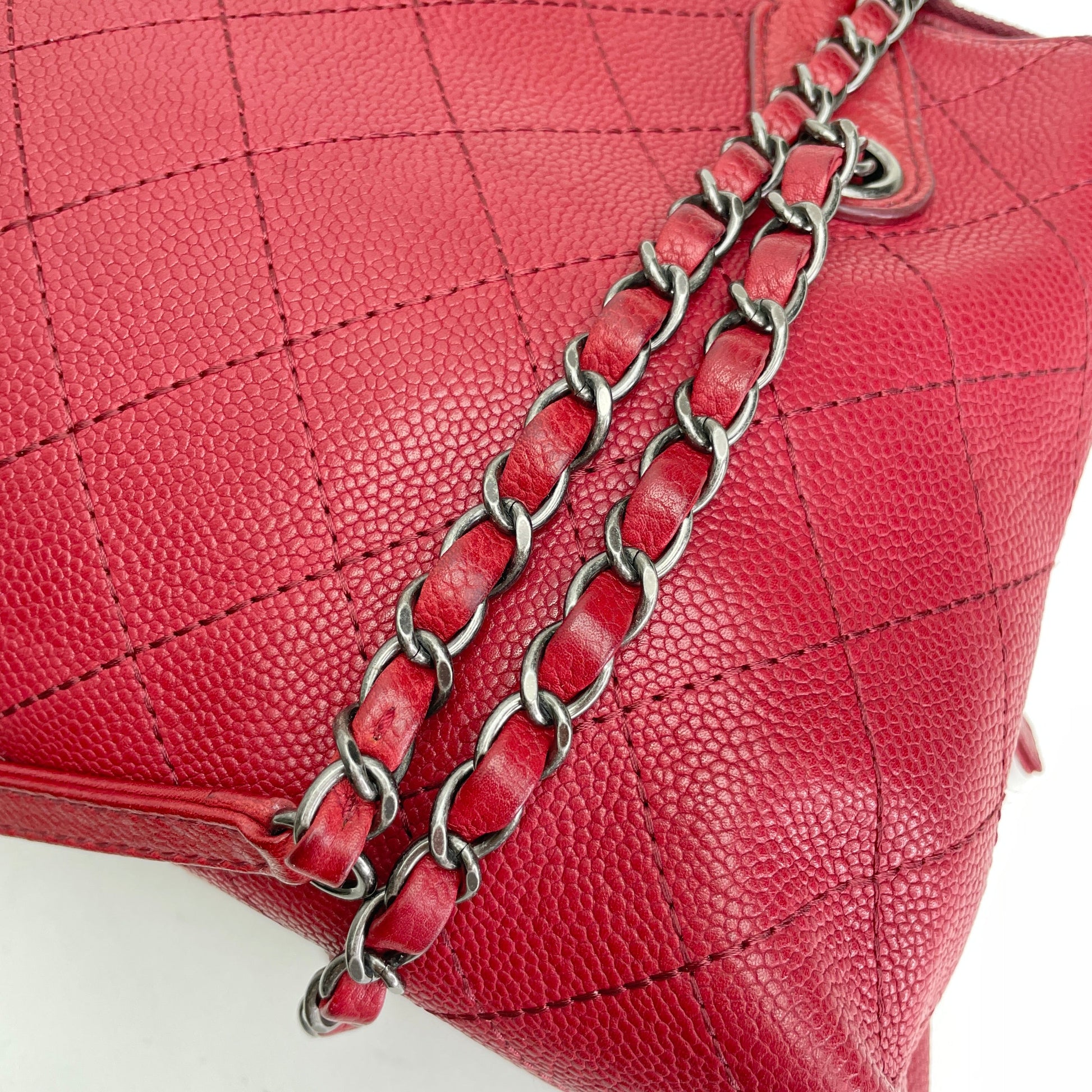 Shopping Red Tote Bag in Caviar Leather, Ruthenium hardware
