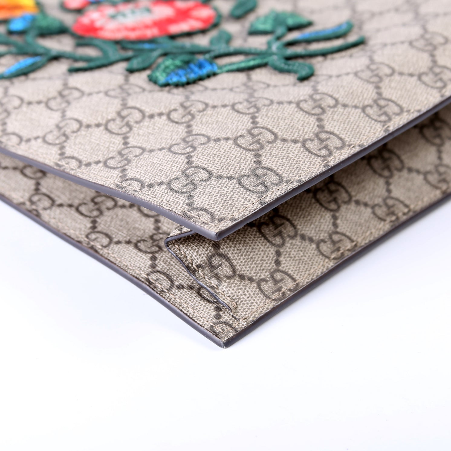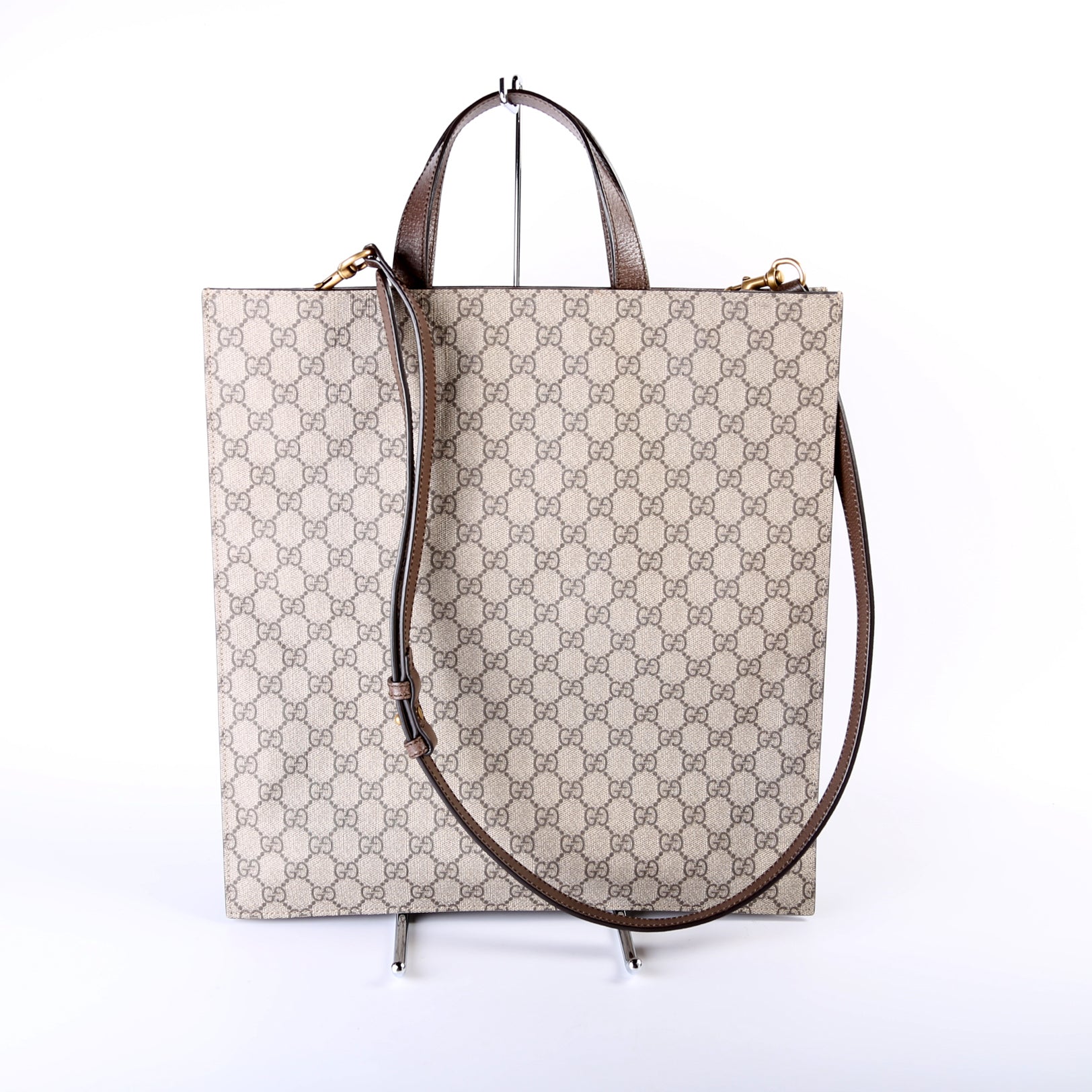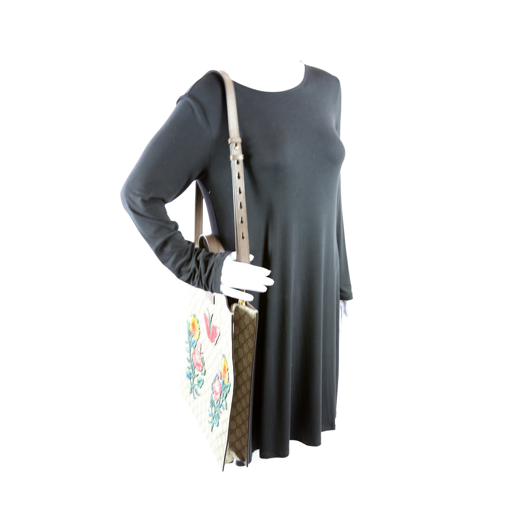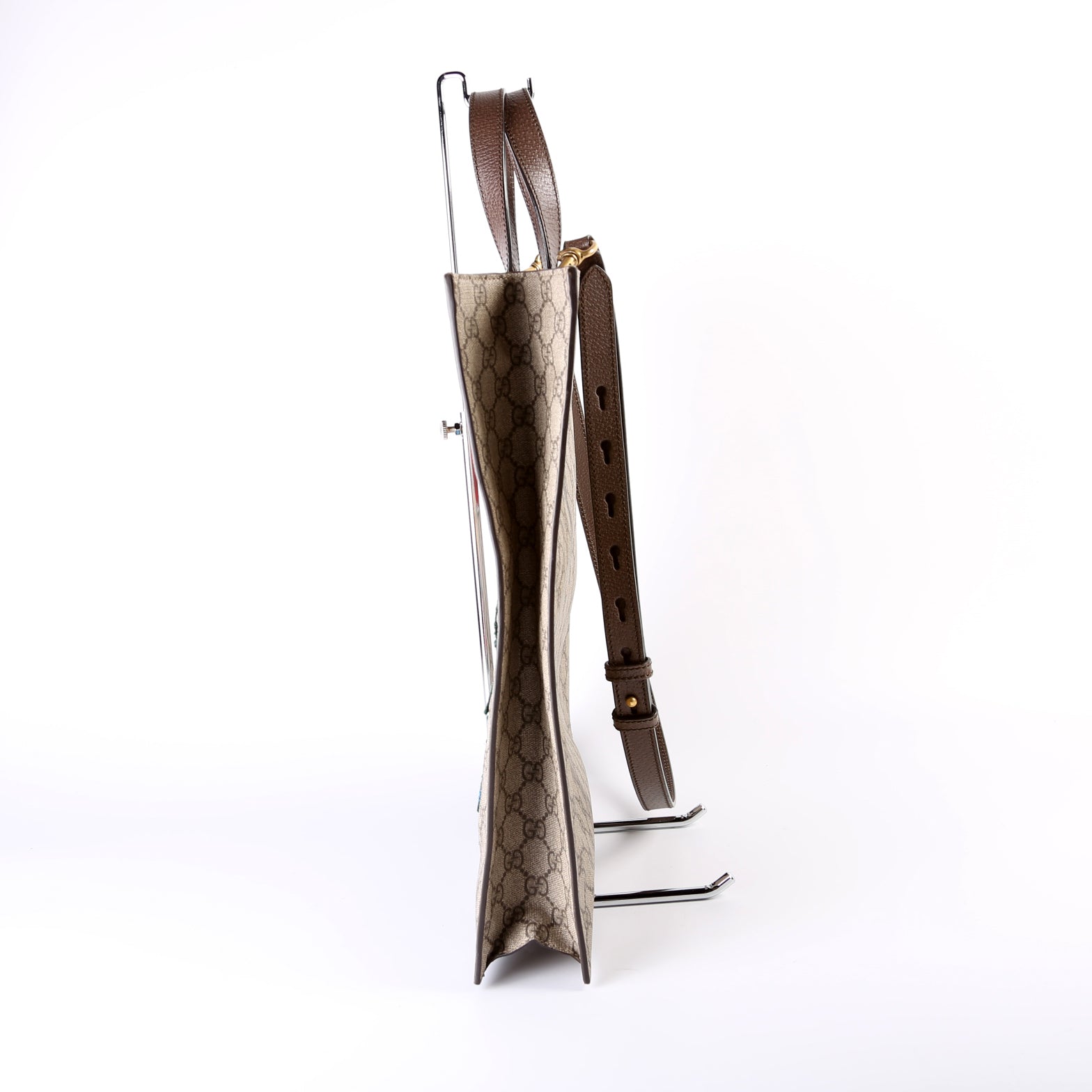 This Gucci Soft GG Supreme Embroidered Vertical Tote is The exterior is in the classic GG Supreme coated canvas.