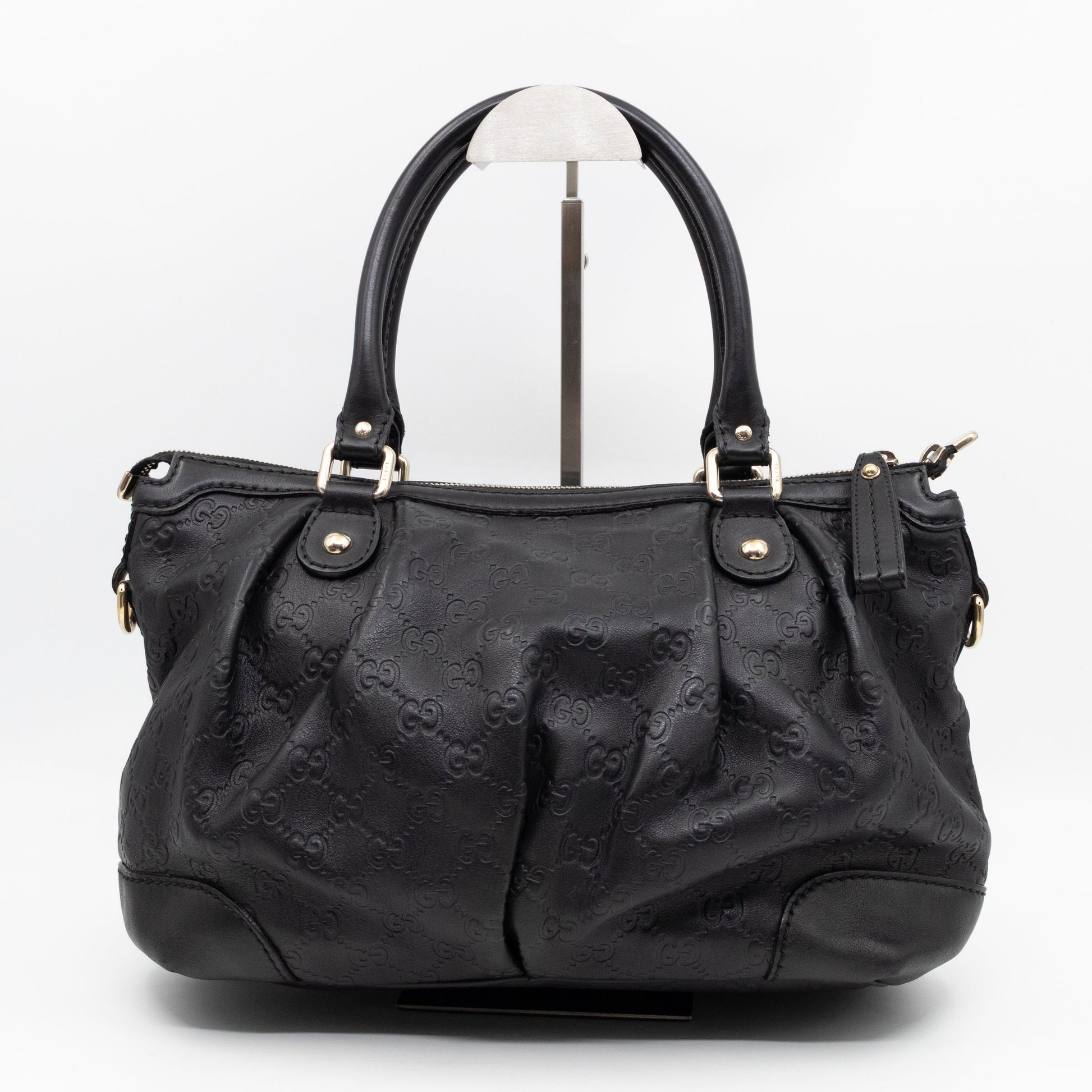 Sukey Medium Top Handle Tote Black Guccissima Leather