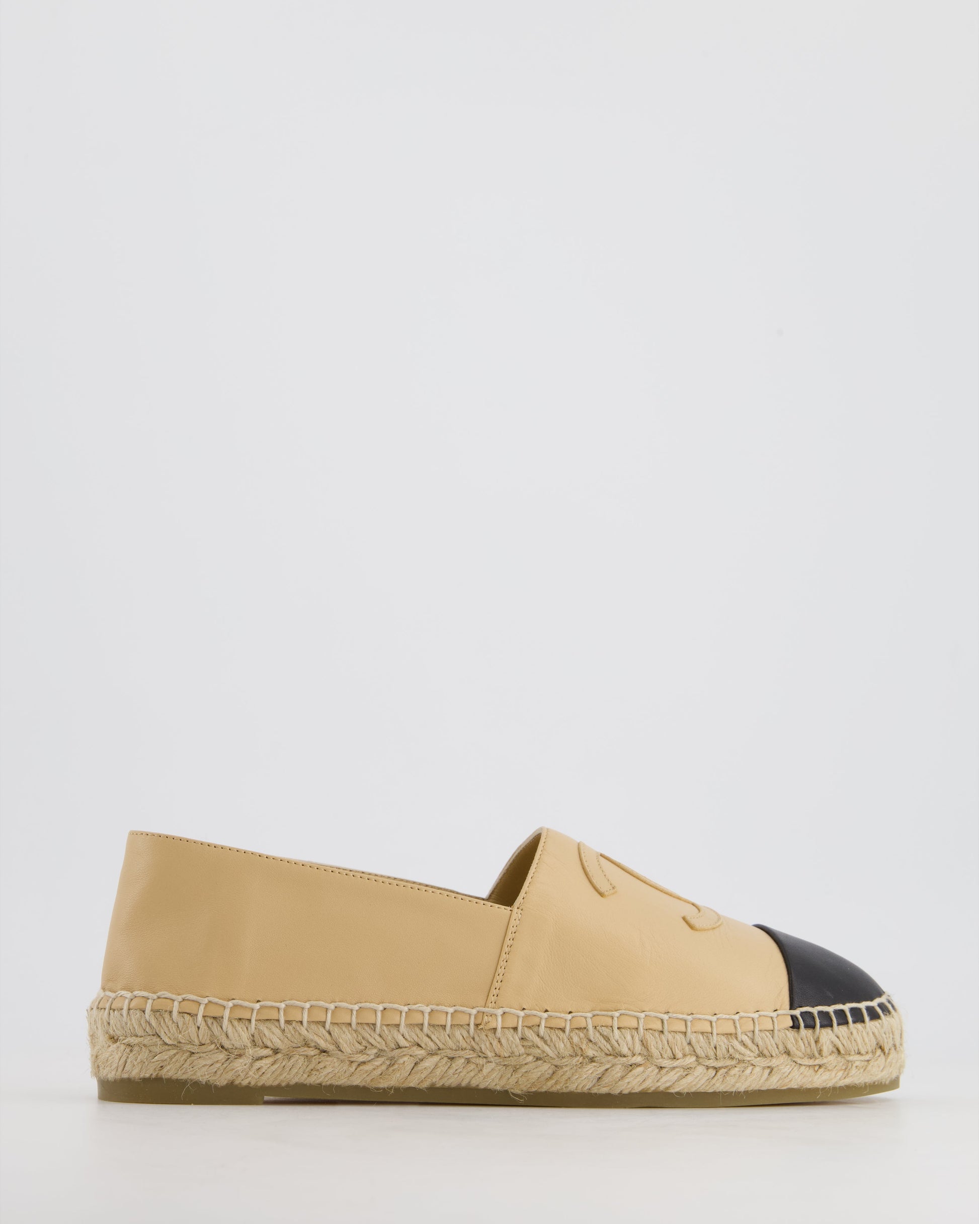 Chanel Beige & Black Leather Espadrilles Shoes Size EU 40 RRP £730