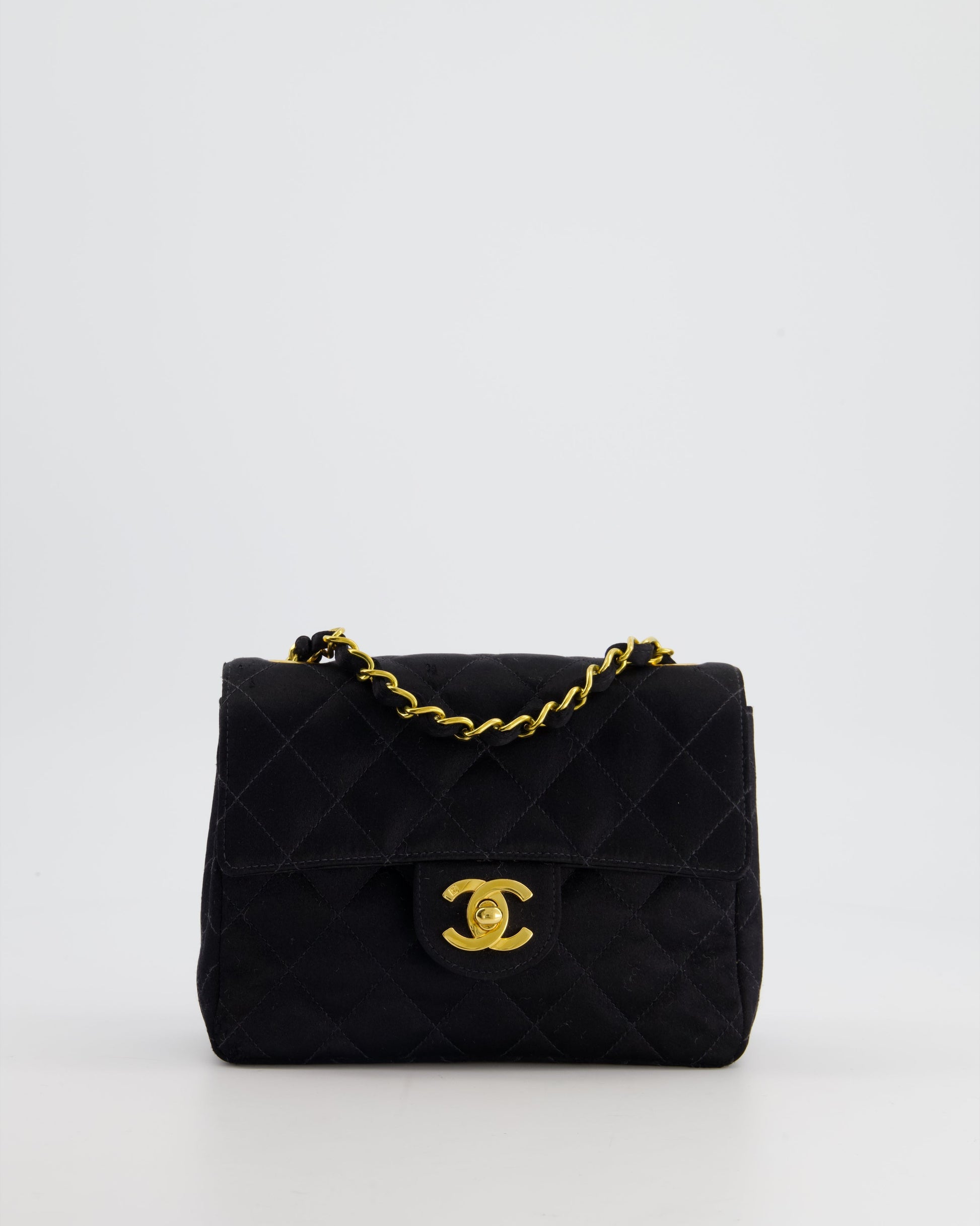 *HOT* Chanel Vintage Satin Black Mini Square Flap Bag with 24K Gold Hardware