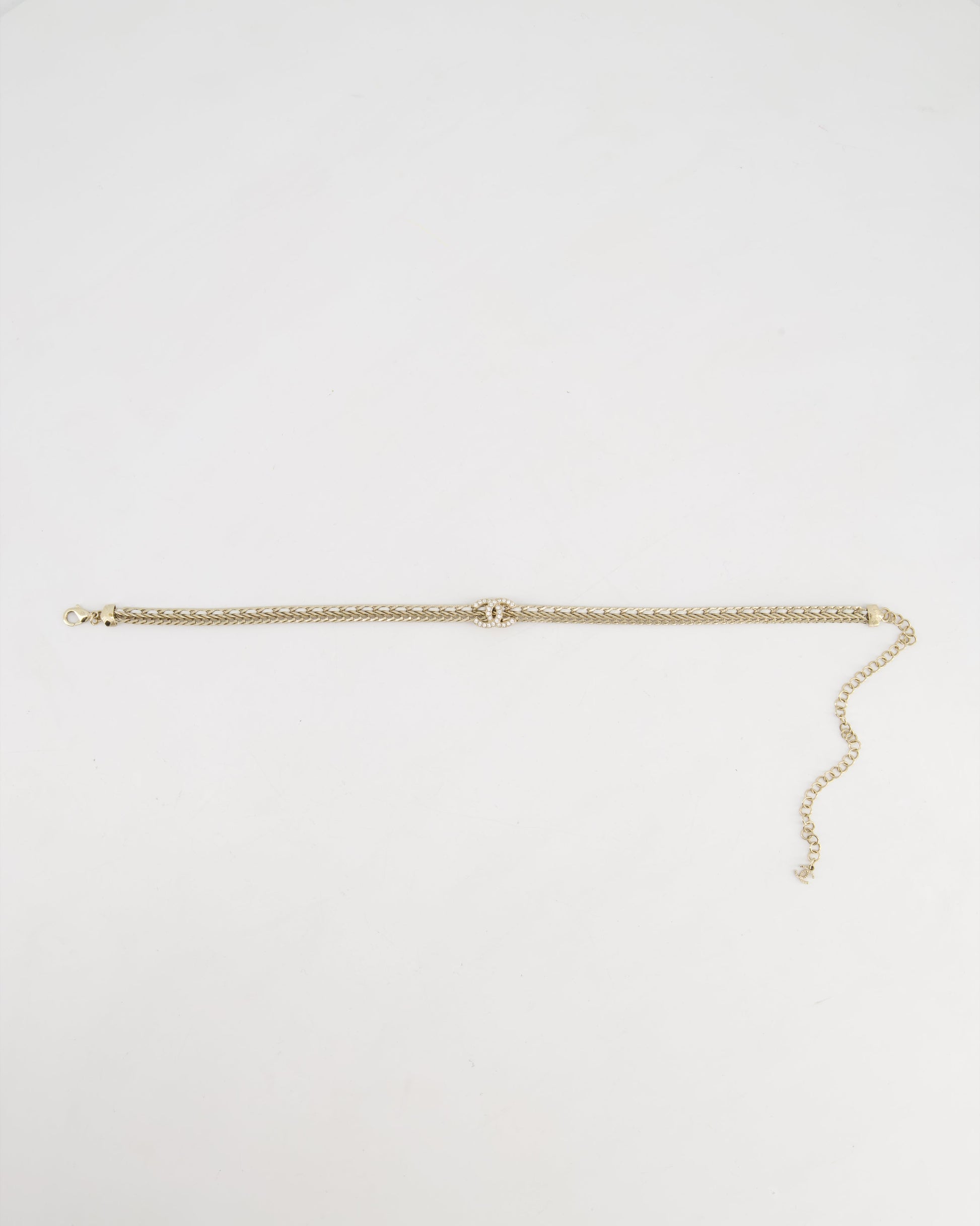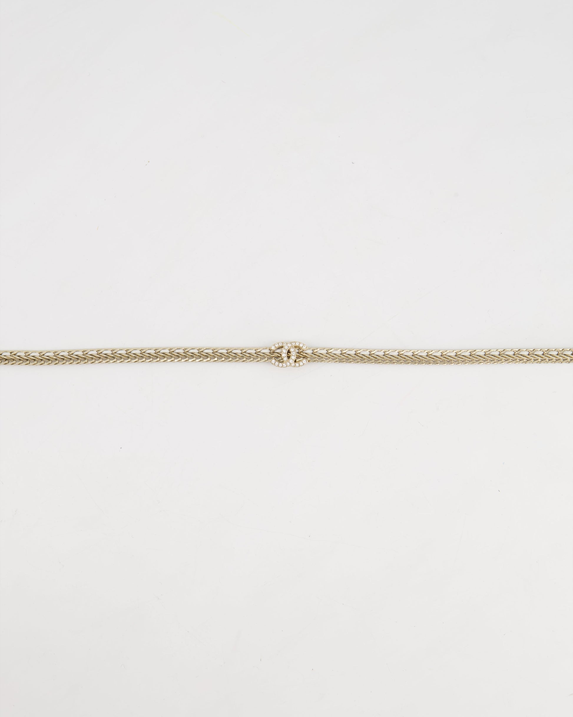 *HOT* Chanel Chain Choker Necklace in Champagne Gold with Crystal CC Logo
