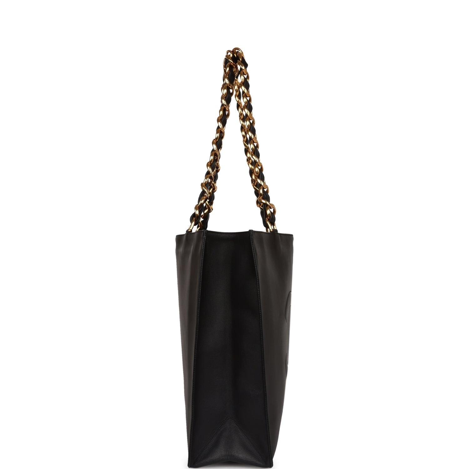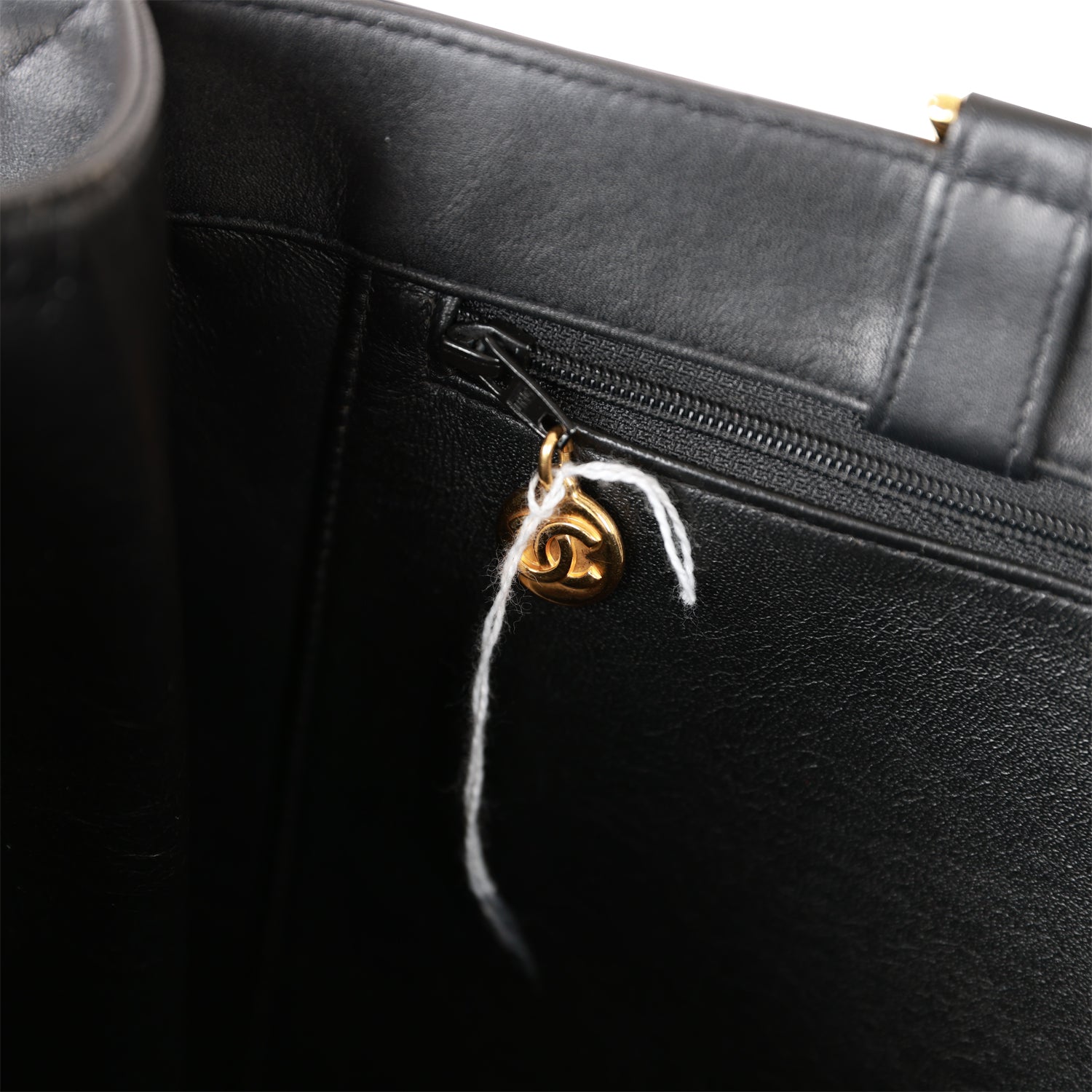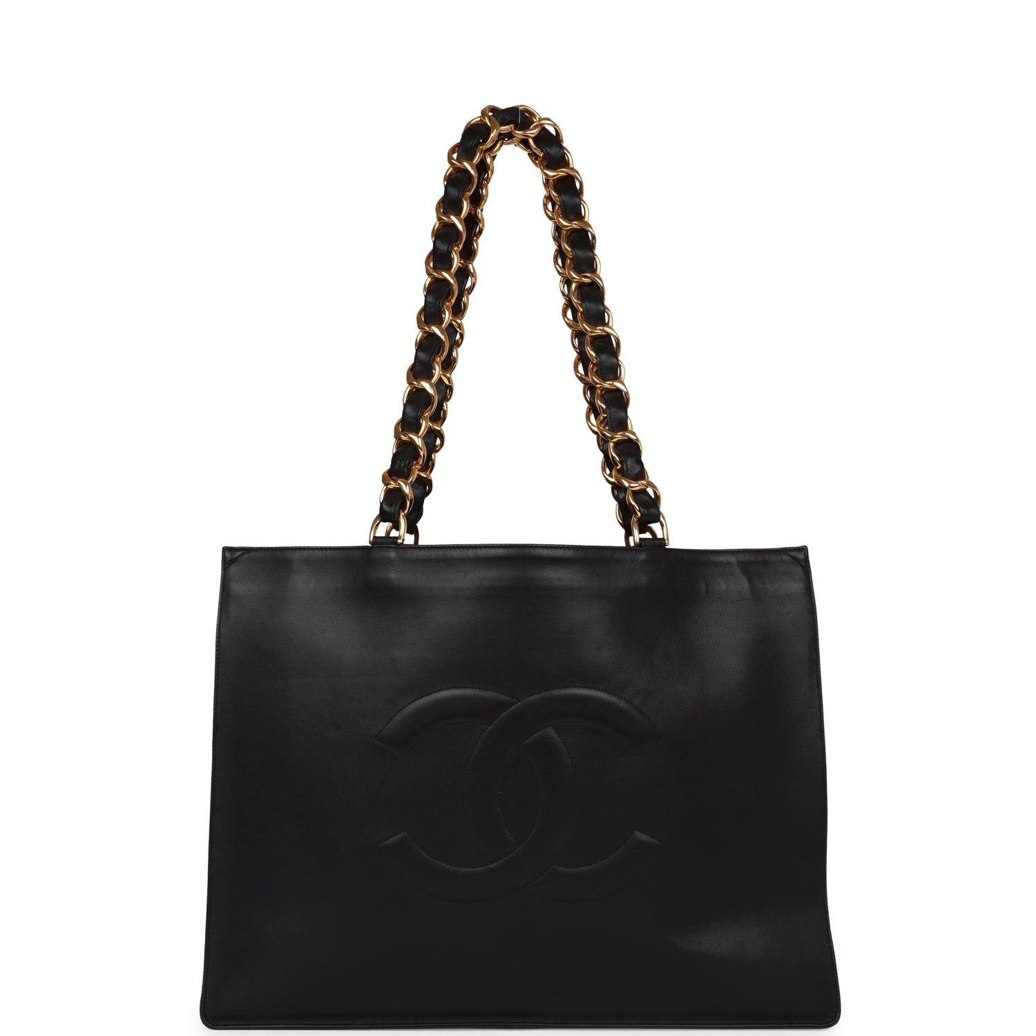 Vintage Chanel CC Chain Shopping Tote Bag Black Lambskin Gold Hardware