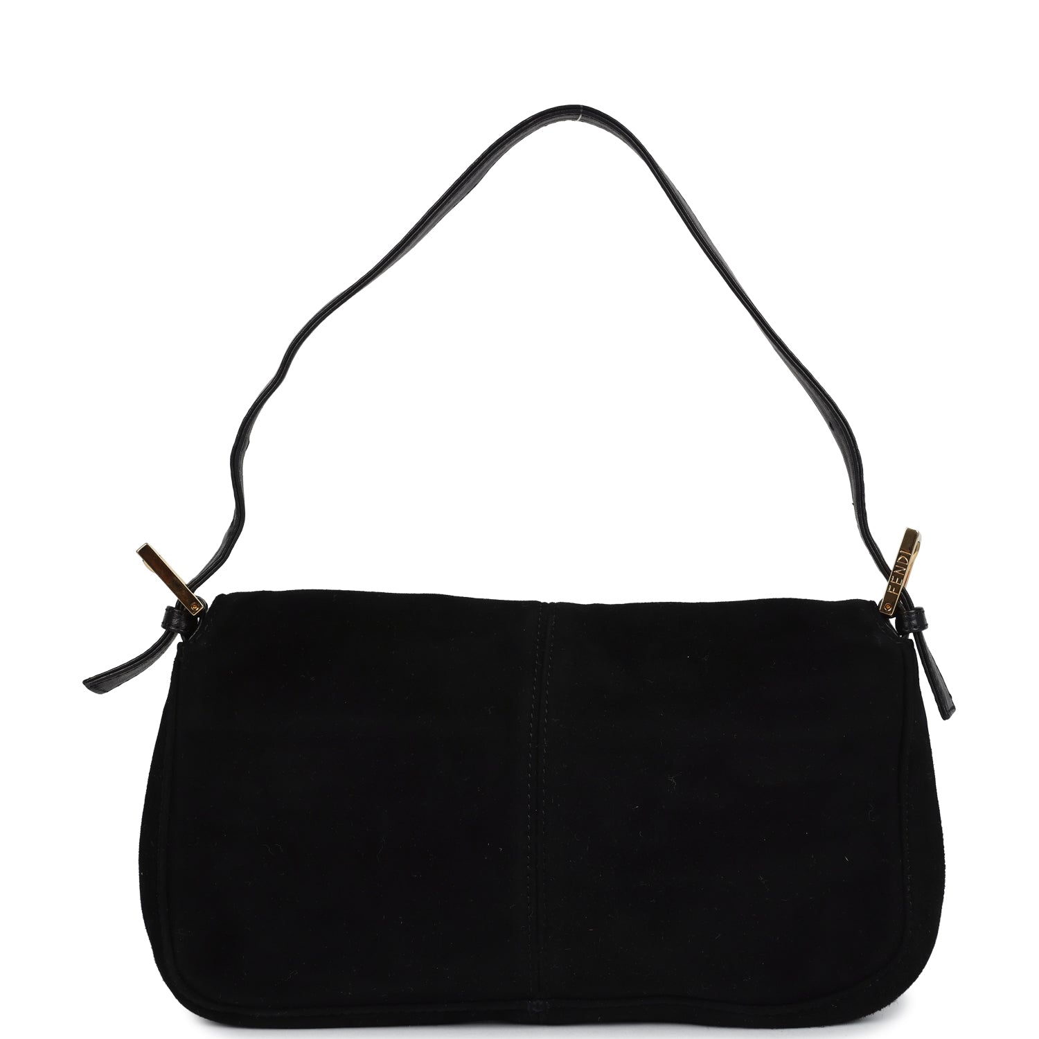 Vintage Fendi Baguette Bag Black Suede Gold Hardware