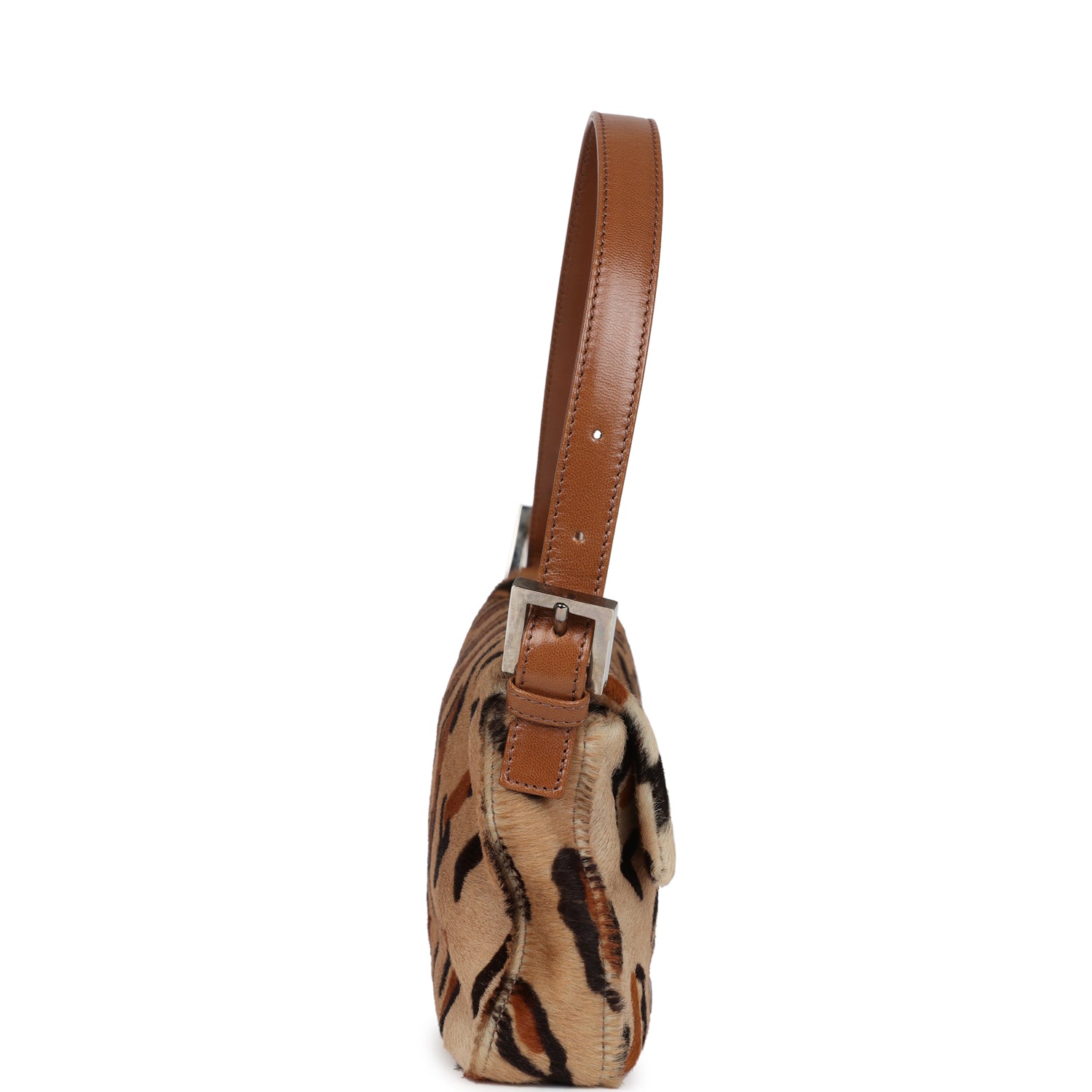 Vintage Fendi Baguette Bag Brown Leopard Pony Hair Silver Hardware