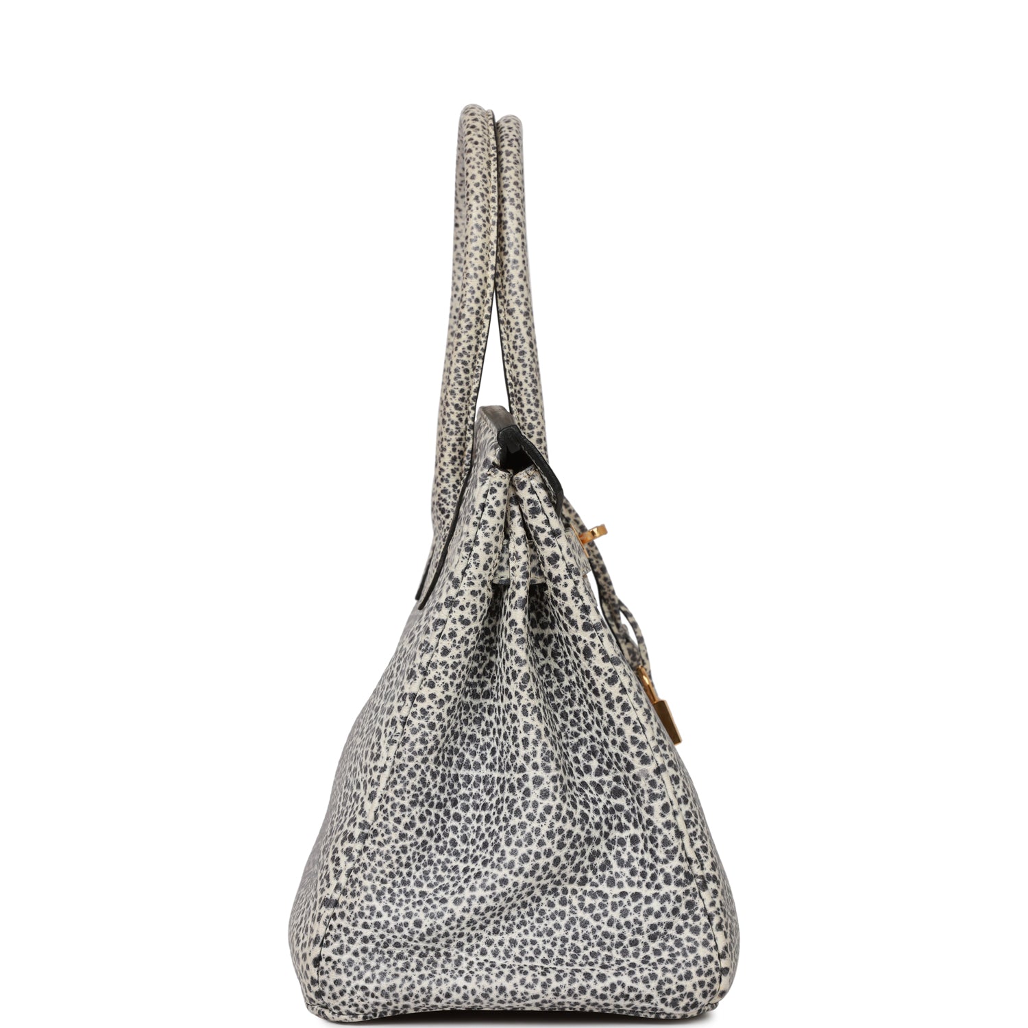 Vintage Hermes Birkin 30 White Dalmatian Buffalo Gold Hardware