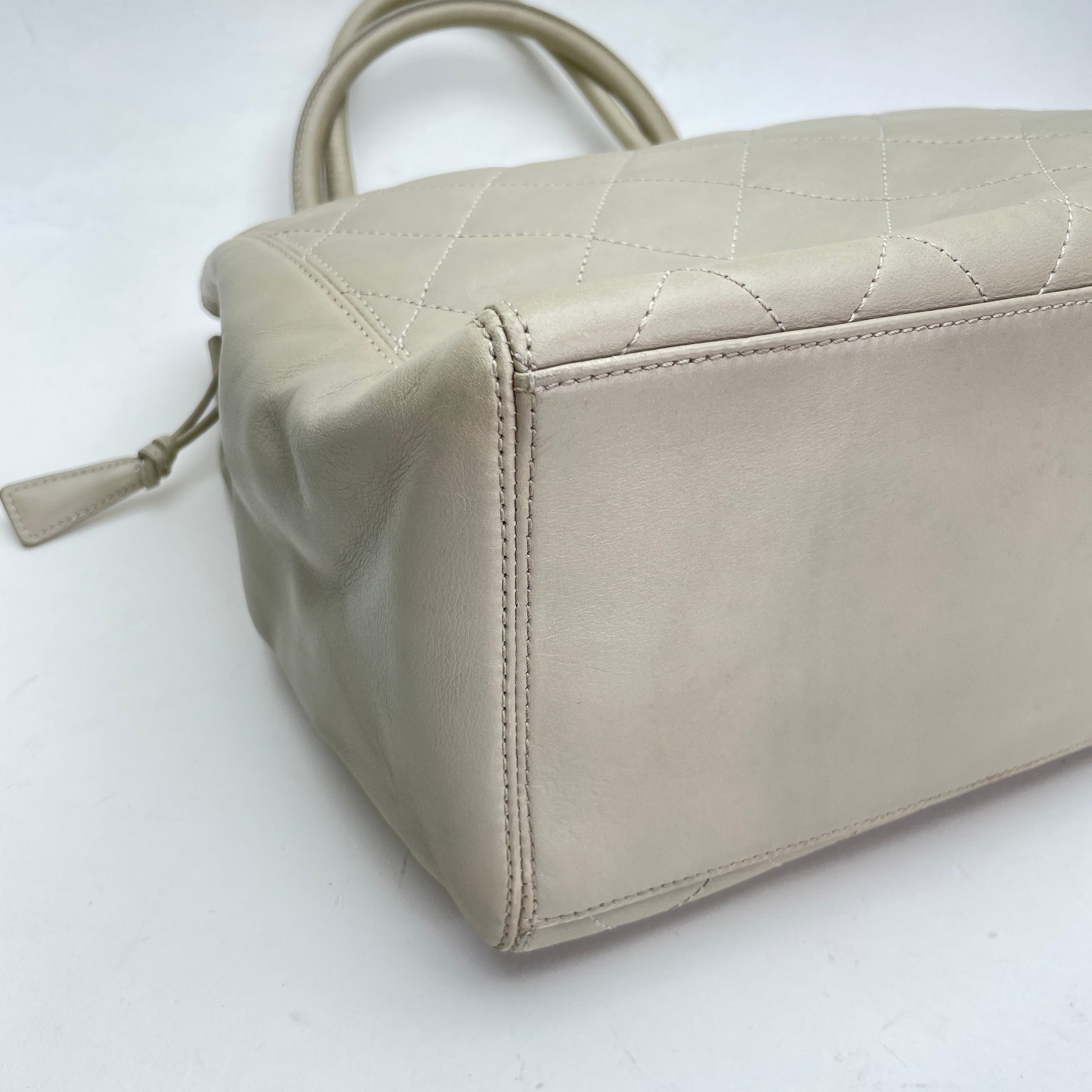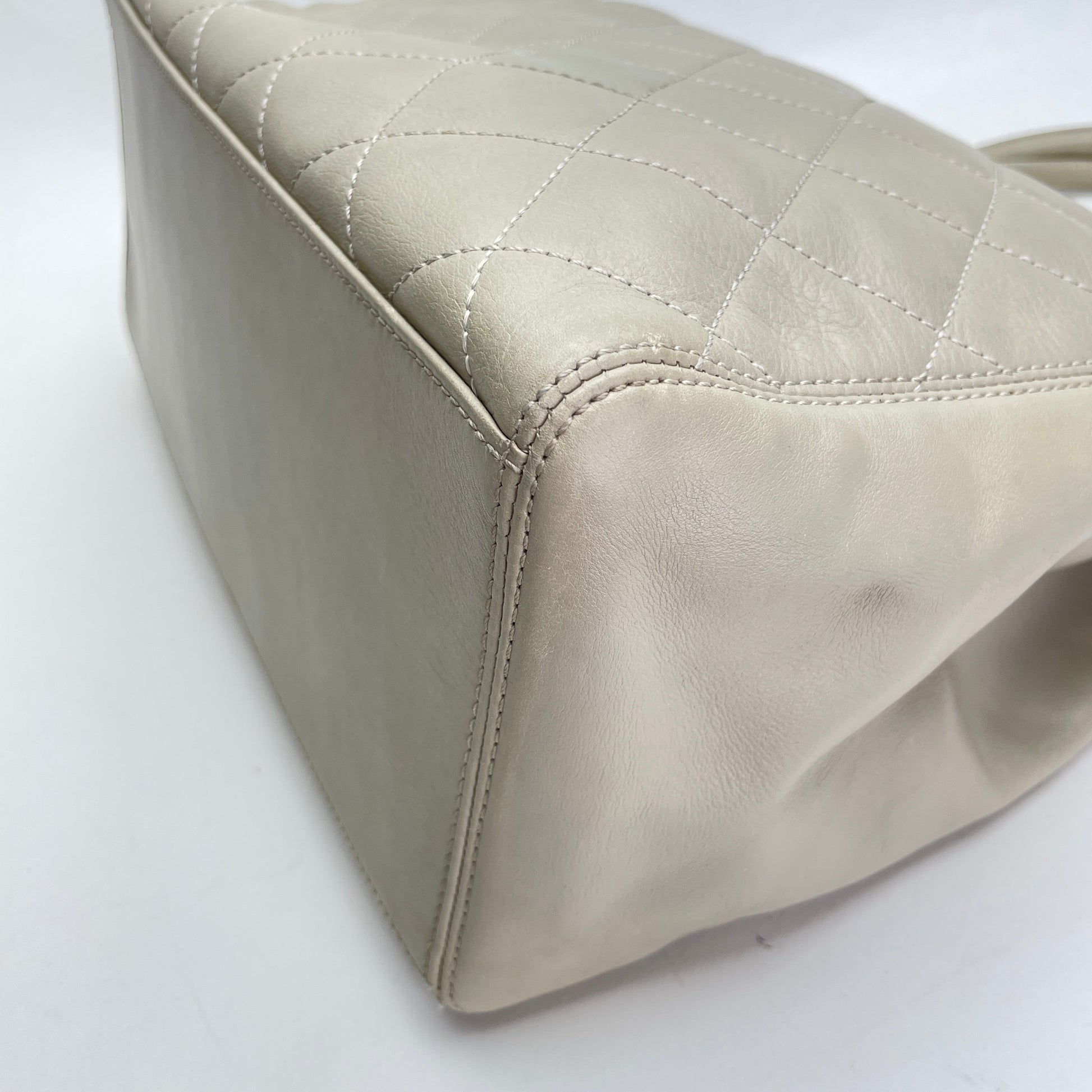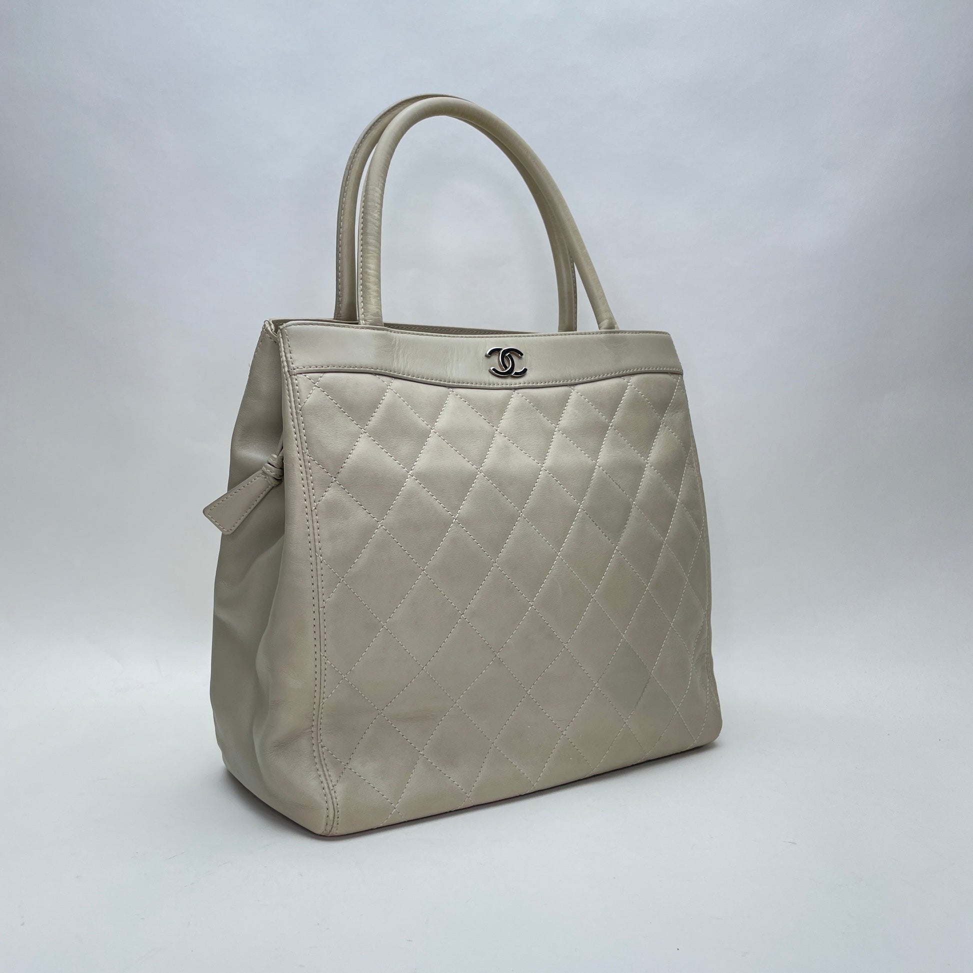 Vintage Quilted CC Beige Tote Bag in Lambskin, Silver hardware