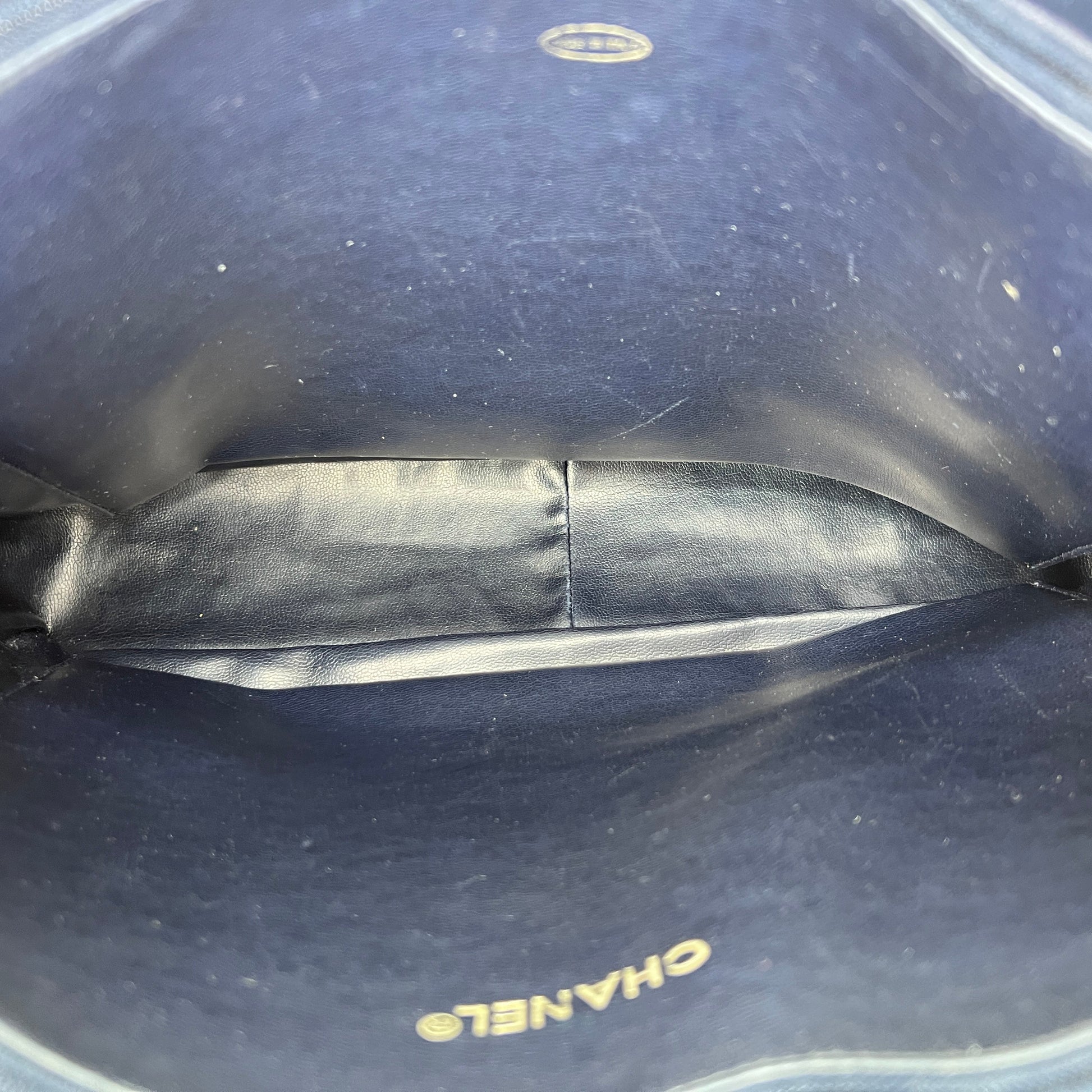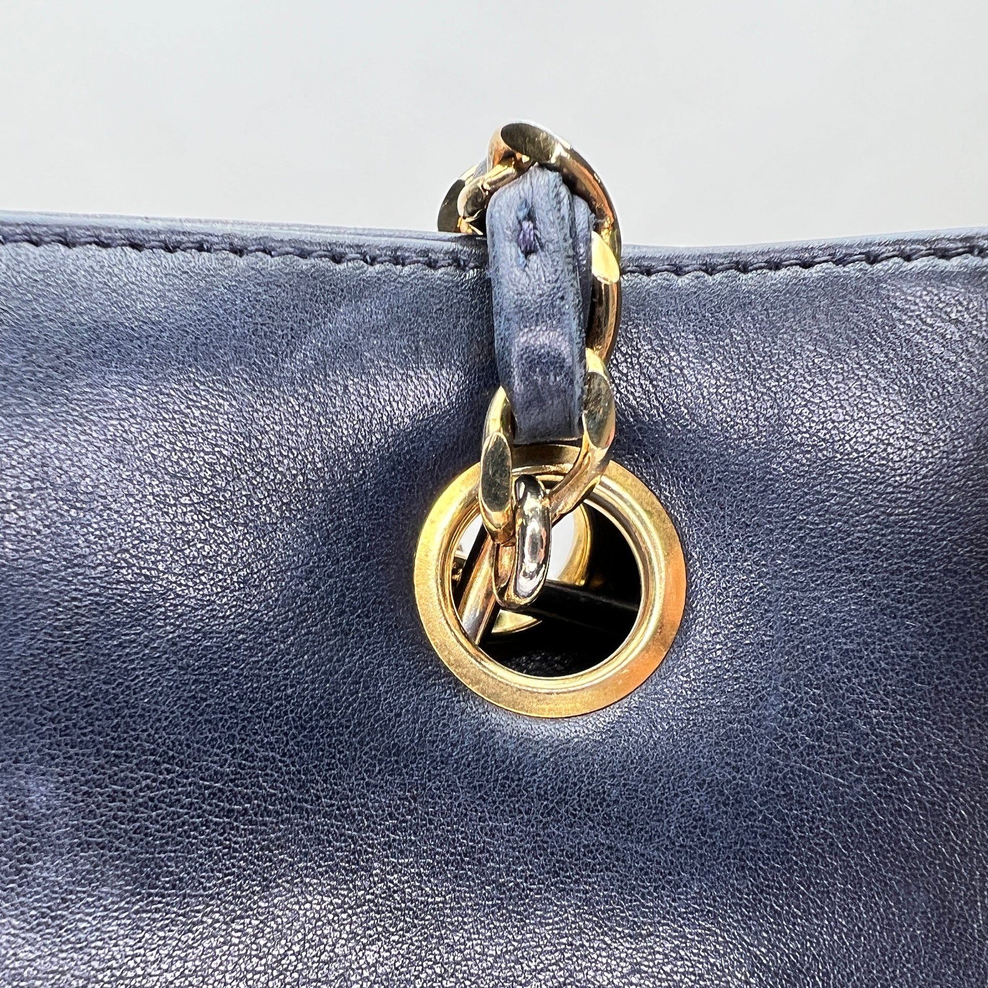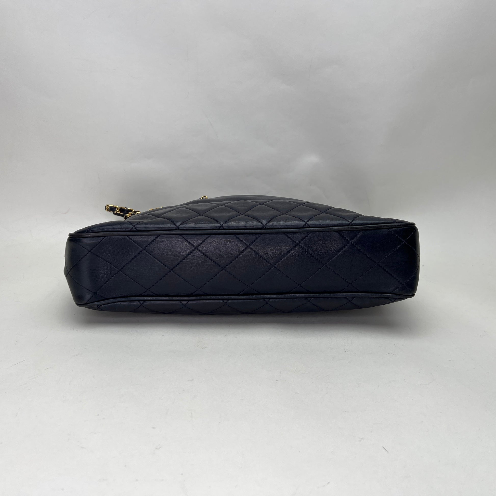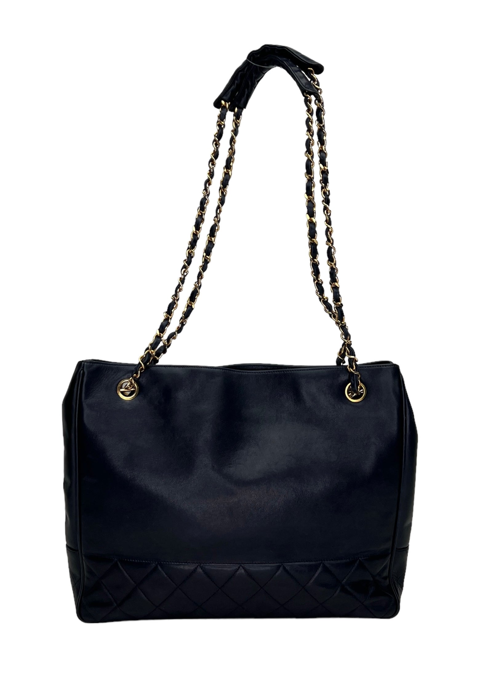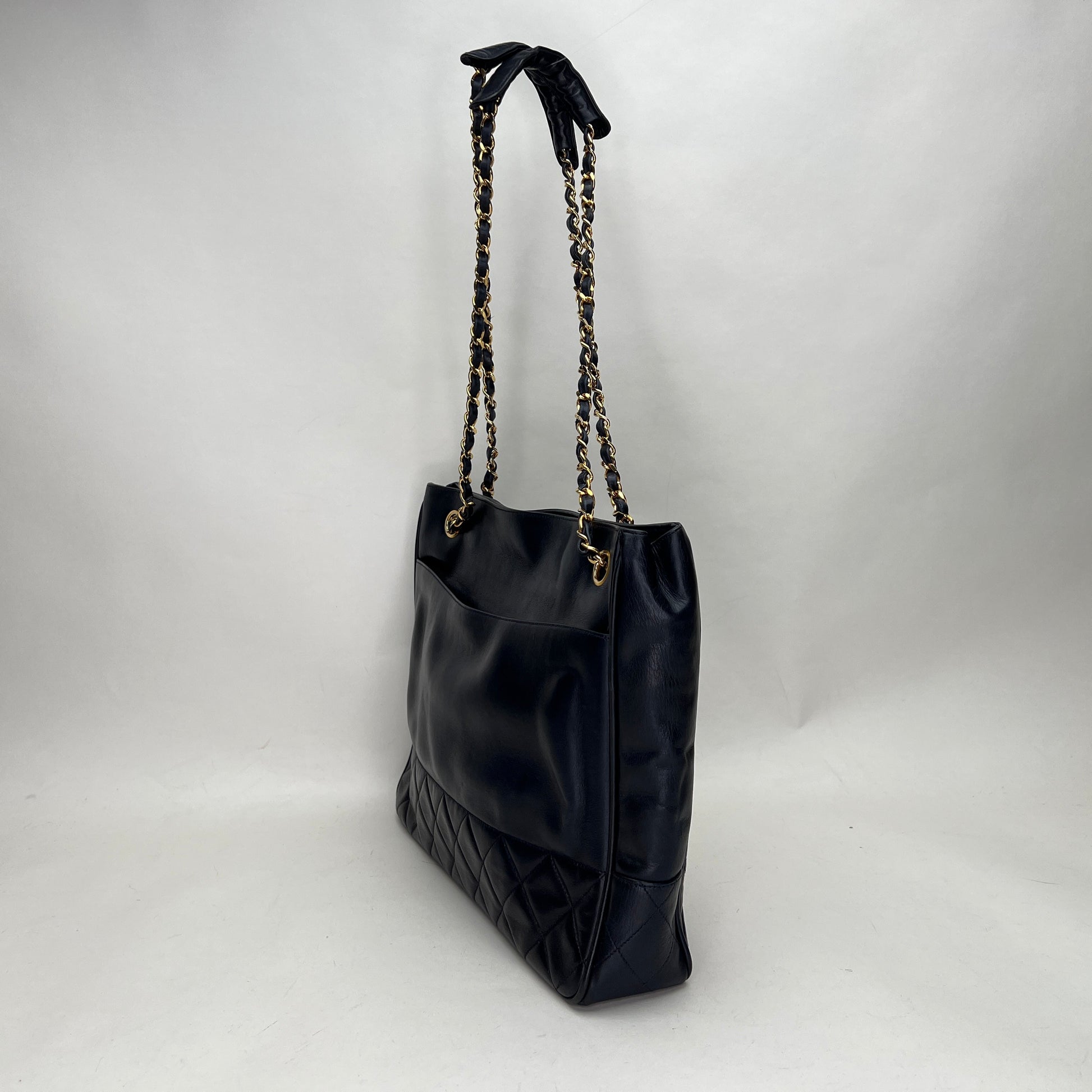 Vintage Quilted Chain Navy Tote Bag in Lambskin, Gold hardware