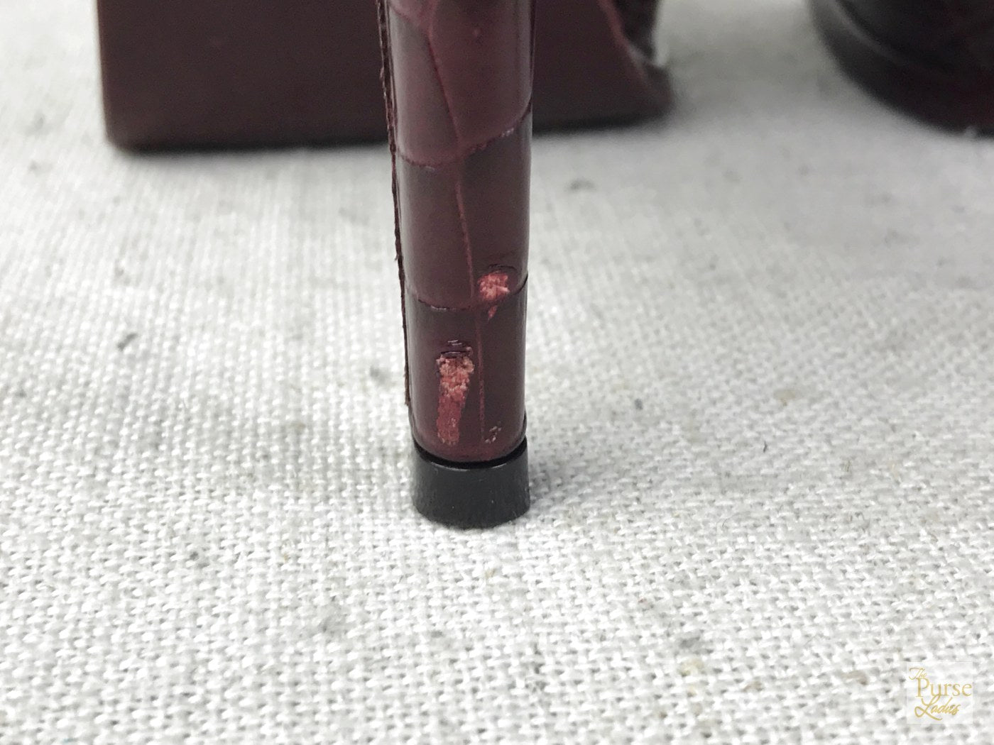 Very Good Condition. The leather displays minor scratches although, the color is rich and not faded. The platform is mildly rubbed/ wrinkled. The left heel displays mild scuffing but the leather is still colorful. The bottom has been consistently with moderate use. The lace-up closure functions properly. Overall, great condition.