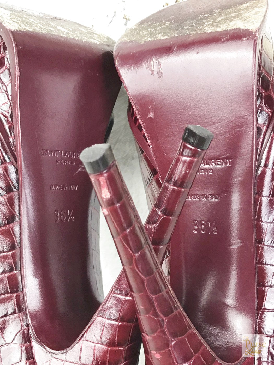 YVES SAINT LAURENT Tribute Croc Embossed Lace up Heels